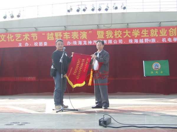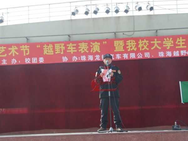 12月5日龍神公司與廣東科學(xué)技術(shù)職業(yè)學(xué)院聯(lián)合“越野e族”舉辦“第十七屆大學(xué)生文化藝術(shù)節(jié) 越野車(chē)文化交流表演暨大學(xué)生就業(yè)創(chuàng)業(yè)基地建設(shè)啟動(dòng)儀式在廣科院校園隆重召開(kāi)。此次大學(xué)生文化藝術(shù)節(jié)由廣科院校團(tuán)委主辦,龍神公司、越野e族協(xié)辦,出席此次活動(dòng)的分別來(lái)自珠海,江門(mén),中山,順德,澳門(mén)的越野e族朋友共八十多輛高級(jí)越野車(chē)參與;在緊張刺激的汽車(chē)轟鳴聲中拉開(kāi)了序幕。