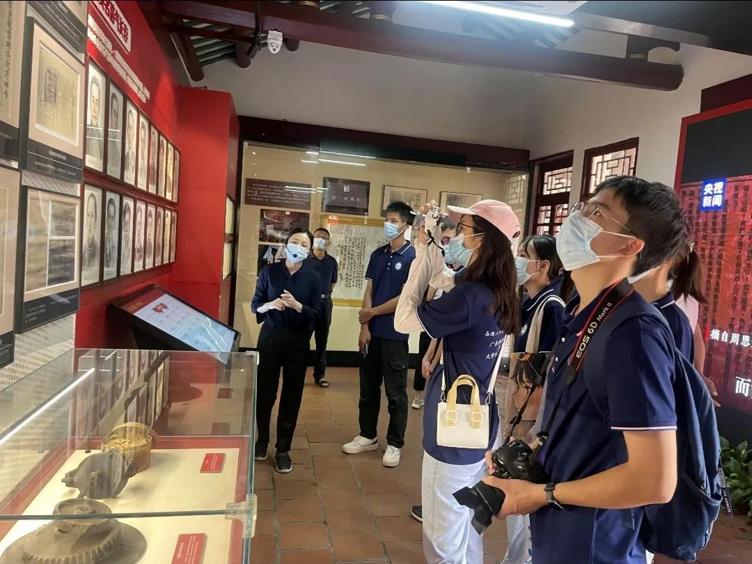 “紅色引擎”驅動綠色低碳實踐團首先來到汕頭開埠文化陳列館,并參觀中共中央至中央蘇區(qū)秘密交通線汕頭中站舊址。站在舊址門前仰望,感受到了該建筑所特有的歷史莊嚴感與神圣感。紅旗飄揚,舊址矗立,似訴說著那一段段為革命事業(yè)而奮斗的故事。