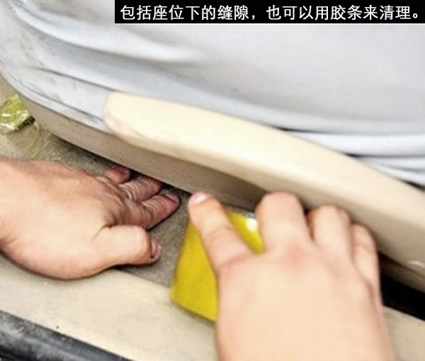 如果沒有吸塵器怎么辦呢?別急,我們可以用粘毛器或膠條來代替吸塵器,效果也是比較明顯的。我們可以先用粘毛器來清潔地面平整的部分,一些角落或座位下等不容易清理的部分可以用膠條來清理。