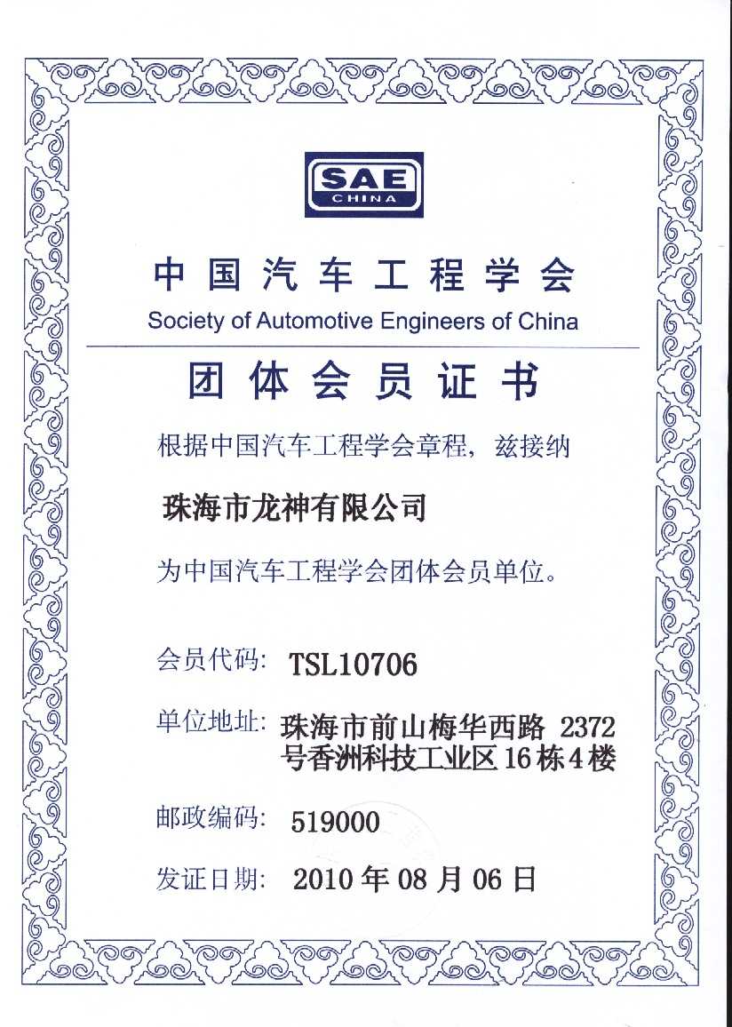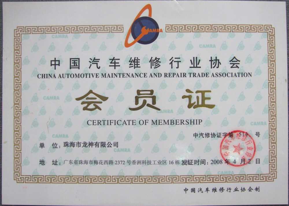 會員證書 會 員 證 書2020年廣東省汽車保修設(shè)備商會-監(jiān)事單位中國汽車工程學會團體會員證書中國汽車維修行業(yè)協(xié)會會員證珠海市人民對外友好協(xié)會第二屆理事會團體會員 2012-11-27 34615