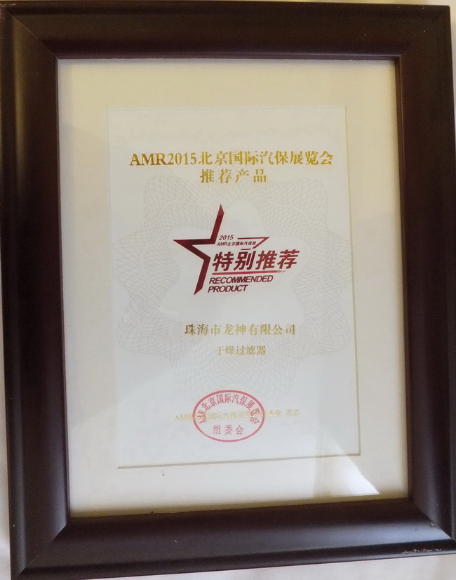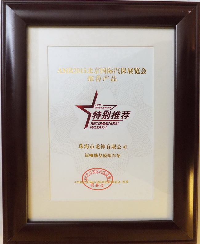 2015年4月8日,2014年度“20佳汽保產(chǎn)品”、“20佳維修工具”、AMR2015北京國(guó)際汽保展推薦產(chǎn)品頒獎(jiǎng)晚宴于北京成功舉辦。珠海龍神“干燥過(guò)濾器”,“鈑噴修復(fù)模擬車架”榮獲ARM2015北京國(guó)際汽保展覽會(huì)推薦產(chǎn)品獎(jiǎng)。