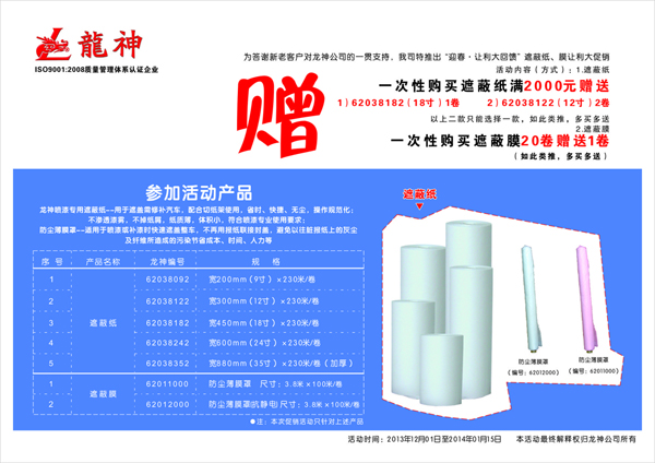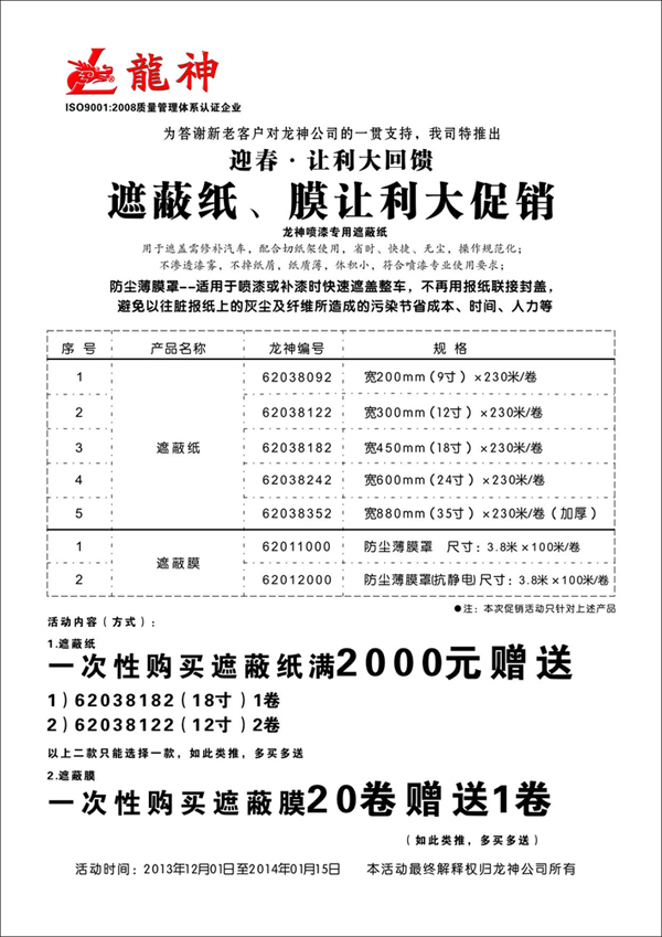 2013年遮蔽紙、膜促銷方案