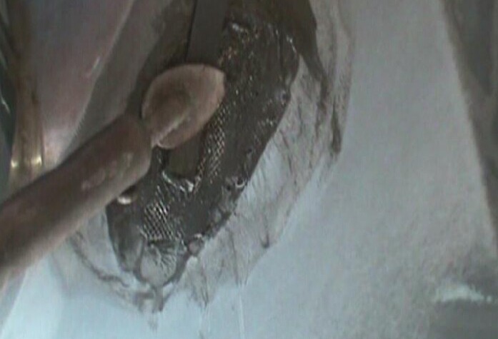 步驟8:使用專用烙鐵將玻纖膠條從無銹加固網(wǎng)的周圍慢慢向洞孔中心覆蓋,如圖1-8所示。